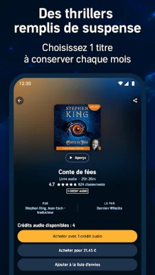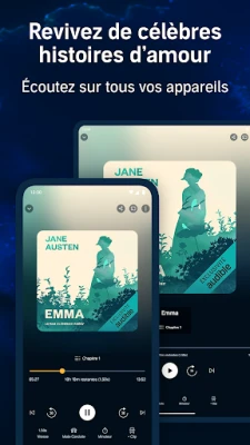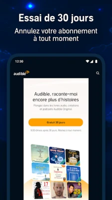 Audible s'adapte à chaque moment de votre vie. Que vous soyez en déplacement, en pleine séance de sport avec votre Wear OS, ou confortablement installé chez vous avec votre Kindle, votre parcours auditif reste fluide et ininterrompu. Accédez à vos contenus favoris même sans connexion, et personnalisez votre expérience d'écoute grâce à des options intuitives comme le réglage de la vitesse de lecture ou la minuterie de sommeil, parfaite pour une fin de journée sereine. Chaque mois, un crédit vous est offert pour choisir le titre qui enrichira le plus votre collection.