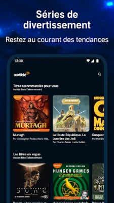 Découvrez des horizons insoupçonnés et nourrissez votre esprit avec Audible. Avant même leur adaptation à l'écran, vivez des intrigues palpitantes et explorez des mondes complexes à travers l'audio. L'application offre également une richesse de contenus dédiés à la méditation, au développement personnel et même des profils sécurisés pour les plus jeunes, garantissant une écoute adaptée à toute la famille. Renouvelez votre inspiration quotidiennement en explorant des nouveautés chaque semaine et en construisant votre liste de souhaits.