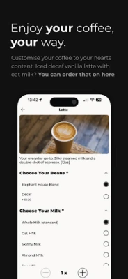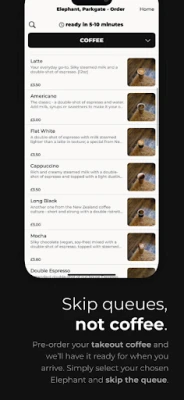Optimisez votre temps précieux en anticipant. Grâce à cette application, commandez à l'avance votre boisson préférée à emporter. Sélectionnez simplement votre établissement Elephant favori et, à votre arrivée, tout sera prêt, vous permettant de contourner les files d'attente et de récupérer votre commande en un clin d'œil. Mais ce n'est pas tout : cette plateforme est aussi votre porte d'entrée vers un univers d'avantages. Accédez à des offres spéciales, des réductions personnalisées et des extras exclusifs, réservés uniquement à nos utilisateurs privilégiés.