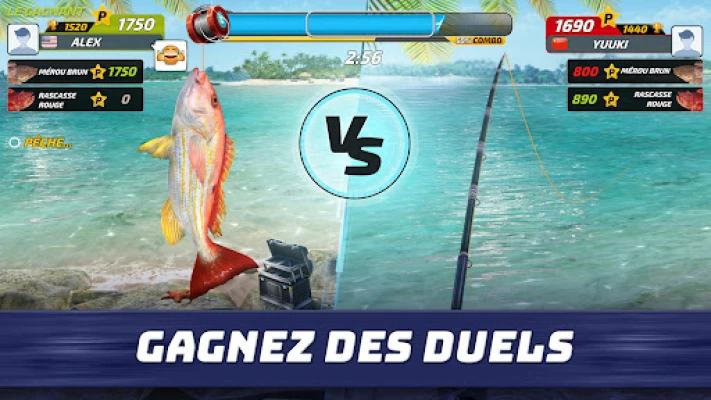 L'excitation est à portée de main dès que vous lancez votre ligne. Maîtrisez l'art subtil de la canne et du moulinet, en gérant la tension pour remonter des prises records qui feront la fierté de votre tableau de chasse. Mettez vos compétences à l'épreuve lors de duels en temps réel, où stratégie et agilité décident du vainqueur face à d'autres pêcheurs du monde entier. Pour progresser et débloquer de nouveaux horizons, collectez et améliorez vos précieuses cartes d'appât. Chaque victoire et chaque classement vous rapproche de la domination des tournois mondiaux et de la capture de poissons toujours plus insaisissables, des majestueux bars aux créatures insondables des abysses.