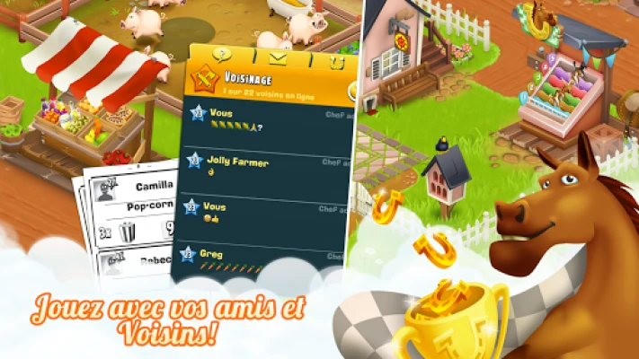Plongez dans l'univers apaisant de la vie rurale avec Hay Day, le jeu de gestion agricole par Supercell. Cultivez la terre sans effort : semez vos céréales et observez-les grandir en toute autonomie, sans besoin d'arrosage. Une fois mûres, réservez une partie de vos récoltes pour les replanter et transformez le surplus en profits au marché de la ville. Accueillez ensuite une joyeuse ménagerie – poules, cochons, vaches et bien d'autres – dont vous prendrez soin pour collecter des produits frais. C'est une symphonie champêtre où chaque geste contribue à l'épanouissement de votre domaine.