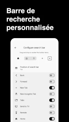 Votre vie privée est au cœur de notre conception. Naviguez en toute confiance grâce à un mode incognito robuste, qui assure une exploration du web sans laisser de trace, protégeant vos recherches et activités de tout suivi indésirable. Pour vos informations les plus sensibles, un système de favoris privés, sécurisé par un code PIN personnel, offre un sanctuaire numérique impénétrable. Vos liens et données importantes sont ainsi protégés des regards indiscrets, accessibles uniquement par vous, garantissant une protection inégalée de votre espace personnel en ligne. Profitez d'une liberté de navigation inégalée, où le web s'adapte à vos besoins de tranquillité et de sécurité.