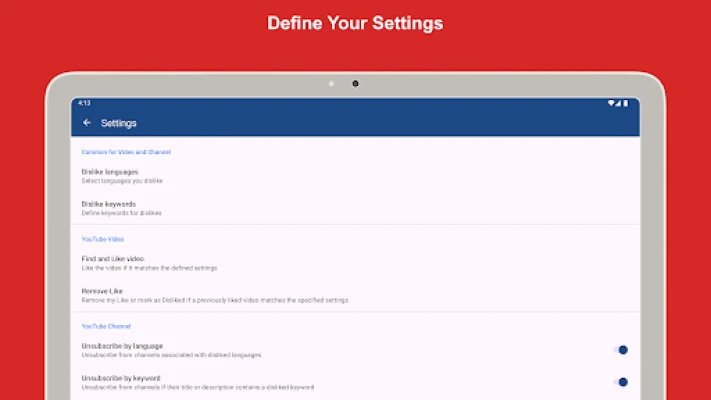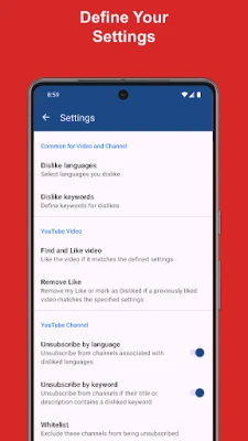 Mais l'utilité de TubeLang ne se limite pas à la découverte. Prenez le contrôle total de votre bibliothèque YouTube existante ! Vous avez liké des vidéos qui ne vous parlent plus ou vous êtes abonné à des chaînes dont le contenu ne correspond plus à vos attentes ? TubeLang offre une gestion simplifiée de votre engagement passé. Vous pouvez facilement révoquer des "J'aime" sur des vidéos spécifiques ou vous désabonner de chaînes entières, le tout en appliquant vos propres critères basés sur des mots-clés et la langue. C'est la solution ultime pour organiser et affiner votre fil d'actualité, garantissant que seuls les contenus qui vous passionnent continuent d'apparaître.